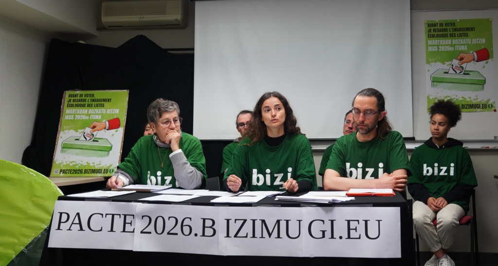 Urte honetatik goiti eta kargualdi osoan zehar, Bizik egiaztatuko du harturiko norabideek emana izan den hitza errespetatzen dutela eta etorriko diren aldaketei buru egiteko lurralde jasangarri eta solidario bat segurtatzeko beharrezkoa den eraldaketa ekologikoan kokatzen direla. Elkarteak sinatzaile ez diren herrietako Herriko Etxeetako taldeak, indartzen ari den klima-aldaketarekiko duten erantzukizunari dagokionez, bereziki jarraitzen segituko du ere.
