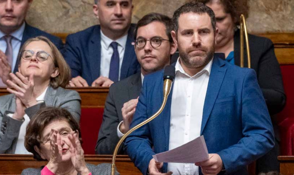 Le député abertzale Peio Dufau prenant la parole à l’Assemblée nationale lors d’une séance publique de questions au Gouvernement, le 26/11/2024 (© DM / Assemblée nationale).