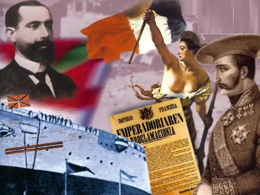 Halere historia ofiziala ere konplikatu da, hiru erresuma handik sudurra hemen sartu baitute: batetik Castilla edo Gaztelako erresumak, gero Espainiakoa izanen denak; bestetik Frantziako erresumak; eta bien artetik Erdi Aroan Ingalaterrako erregeak ere bai, Akitaniako duke izanez.