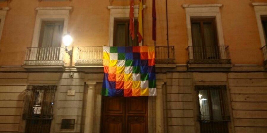 ●●● et réjoui que la municipalité Podemos de Manuela Carmena à Madrid hisse le drapeau indien wiphala pour la fête nationale espagnole du 12 octobre, marquant la “découverte” de l’Amérique.