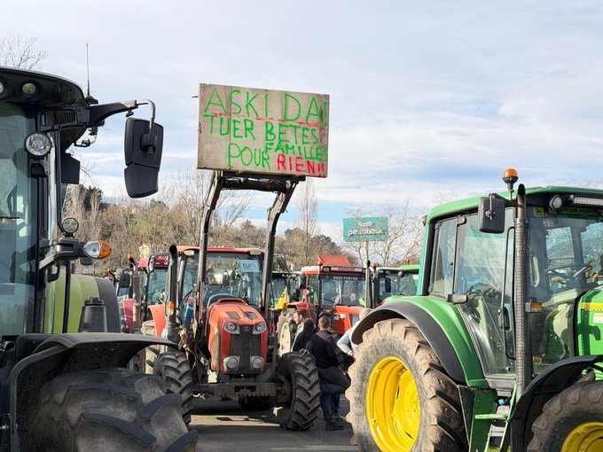 Chaque année qui passe voit disparaître des centaines de paysans. Les dernières mobilisations agricoles démontrent que les survivants ne sont pas prêts de se laisser abattre. Un vilain nouveau virus faisant son entrée sur le territoire français a provoqué la folie administrative chez les services vétérinaires qui n’ont pas pris de gants pour tuer des troupeaux entiers afin d’enrayer la maladie. Non ! Les animaux ne sont pas des machines qu’on jette à la poubelle et que l’on remplace par d’autres ! Le syndicat ELB s’est joint au blocage mis en place par la Coordination Rurale sur l’autoroute A63. Et pourtant, ce n’est pas son mode opératoire préféré puisque le citoyen-consommateur en est le premier impacté.