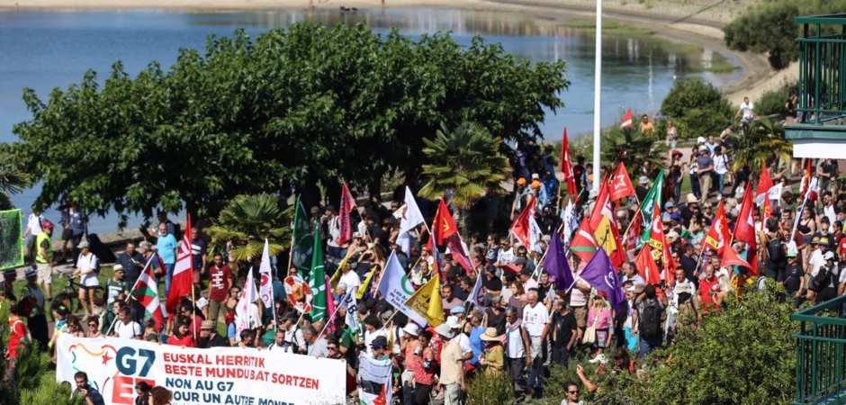 Larunbatean, agorrilaren 24an, 15.000 pertsona bildu dira Hendaia eta Irun artean G7Ez! eta Alternatives G7-k deitutako manifestazioan. ‘G7ez! Euskal Herritik beste mundu bat sortzen’ izeneko pankartaren aitzinean joaldunak joan dira eta nabarmentzekoa izan da manifestazioaren izaera alaia, aldarrikatzailea, koloretsua eta anitza. Tartean zuzeneko musika eskaini duen kamioia, eragileen ikur eta norbanakoen aldarrikapen ugariak, euskarazko eta frantsesezko leloak... izan dira.