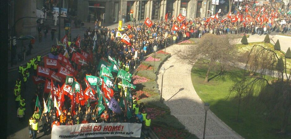 Des milliers de manifestants ont défilé ce matin au cri de « Troika go home » à Bilbo contre la tenue de la conférence économique organisée au Guggenheim avec la présence de la présidente du Fonds monétaire international (FMI), de nombreuses personnalités politiques et économiques et du roi Juan Carlos.