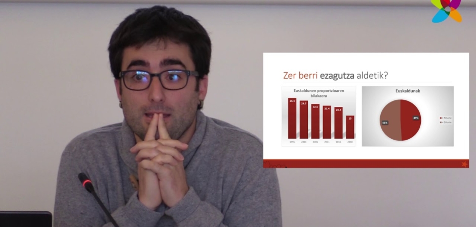 Mende erdi batez euskalgintza sozialak du euskararen biziberritzea bizkar gainean eraman. Haizeen kontra eta baliabiderik gabe, biziberritzerako tresna ausartak eraiki dizkigute, euskararen desagertze programatuaren patua gaindituz. Gaur egun, ziklo berri baten atarian girela dirudi. Transmisiotik erabilerara jauzia egiteko aroa, besteak beste.... Jarraian Biarritzeko euskara teknikaria den Eneko Gorriren hitzaldia 2019ko Topaldian. (...)