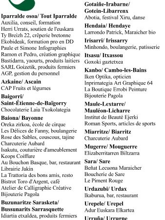 Parmi les 50 nouveaux prestaraires on trouve entre autres : la charcuterie Aubard à Biarritz et Bayonne, Roman Sports à Mauléon, l’opticien Iken Optika à Cambo, les bateaux Ordagna et Kittara, qui vendent leur poisson à la criée à Ciboure, la boulangerie Minhondo à Irrissary, la chocolaterie Laia à Baigorry, l’école de cirque Oreka à Bayonne, la crêperie itinérante Ty Breizh 22 (marchés de Saint-Jean-de-Luz, Anglet et Bayonne), l’Atelier de Calligraphie Créative à Bayonne, etc.