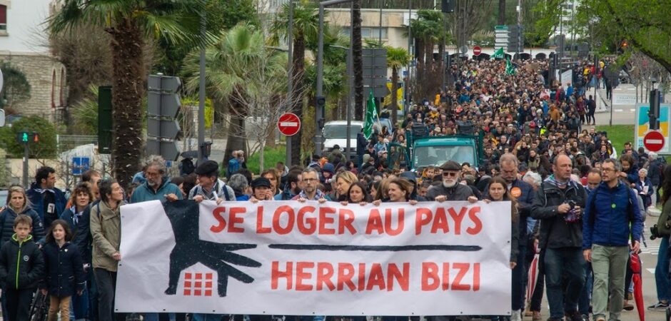 Apirilaren 1ean, larunbatarekin, 3500 pertsonek euriari buru egin diote Baionako karriketan, Europa mailako etxebizitza ekimenaren karietara – Housing Action Day – eta neguko etenaldiaren biharamunean. “Herrian Bizi – Se loger au Pays” plataformak antolaturiko manifestazioak, gobernuari zein parlamentari eta tokiko hautetsiei luzatutako aldarriak plazaratzeko momentua izan da.