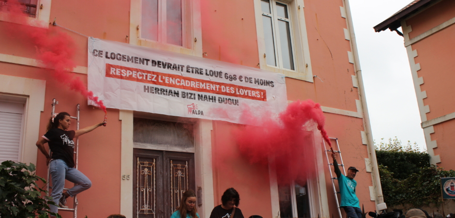 Alors que selon le 5e baromètre de la Fondation pour le logement, 38% des annonces de logement en ligne dépassent les plafonds de loyer dans la zone tendue, à Biarritz elles sont 53 %. Alda appelle à se mobiliser pour faire respecter l’encadrement des loyers. Rendez-vous les 10 et 11 octobre à Auzolan pour faire entendre nos voix et défendre le droit de vivre et se loger au Pays ! (...)