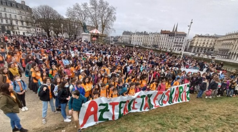 Hautetsiak eta Euskararen Erakunde Publikoko ordezkariak baikor itzuli dira Pariseko bilkuratik. Blanquer ministroaren Baxoko erreforma, hizkuntz gutiagotuak kontutan hartu gabe egin zela aitortu omen du Edouard Geffray Frantziako Hezkuntza ministroak. Baxoan, hizkuntza gutiagotuak kontutan hartuko dituen aldaketak azterktzeko prest agertu omen da. Baina aldaketak, izatekotan, 2027 urtean egiteko mentura litzateke. Hitz ederrez haratago, ekintzak behar ditugu eta berehala!