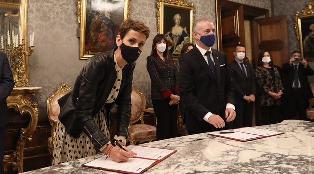 La Communauté forale de Navarre représentée par sa présidente la socialiste María Chivite, et la Communauté autonome basque avec son président le PNV Iñigo Urkullu, ont signé le 10 décembre un accord de collaboration entre les deux institutions qui regroupent les quatre provinces de Hegoalde.